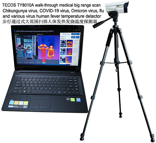 2. Walk-through medical big range automatic scan Dengue Fever virus, Chikungunya virus, flu, Omicron virus, COVID-19 virus, JN.1 virus, Monkeypox virus and various virus human fever body temperature detector (mass human fever screening camera system).