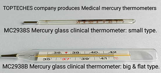 TECOS MC2938S and MC2938B Mercury glass clinical body thermometers can measure a human body temperature in the mouth or under the armpits, they have accurate measurement and clear reading.