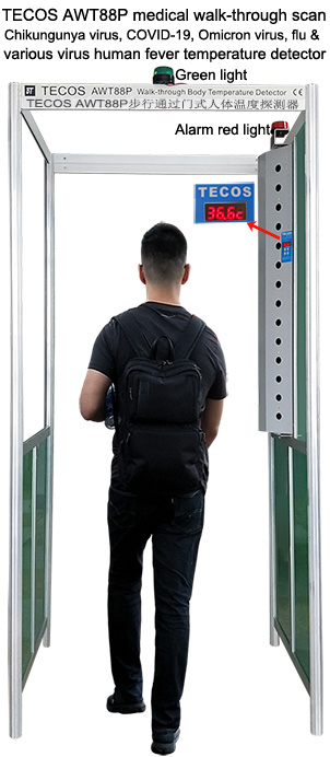 TECOS AWT88P walk-through medical automatic scan Chikungunya virus, COVID-19 virus, Omicron virus, JN.1 virus, flu and various virus human fever body temperature detector (medical automatic scan human body thermometer)